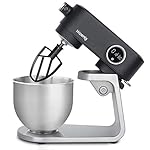 H.Koenig Robot de cocina multifunción 5L KM120 en acero INOX Gris, Robot pastelero, 8 velocidades, Batidor, Mezclador, Gancho Amasador, Tapa anti-salpicamiento, Potente 800 W