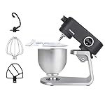 Especificación: H.Koenig Robot de cocina multifunción 5L KM120 en acero INOX Gris, Robot pastelero, 8 velocidades, Batidor, Mezclador, Gancho Amasador, Tapa anti-salpicamiento, Potente 800 W